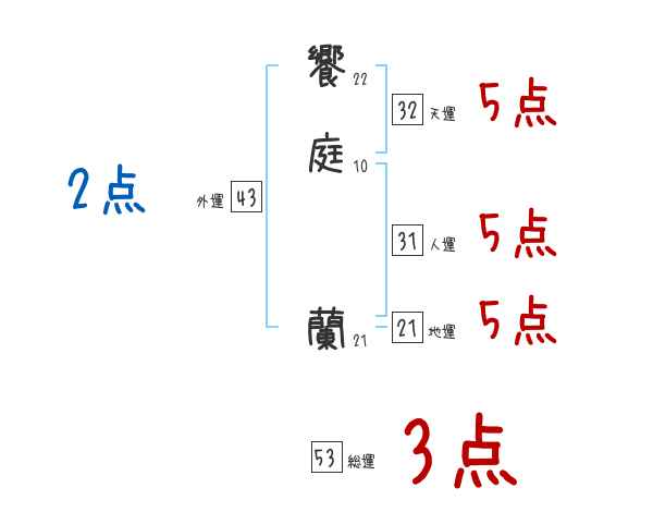 饗庭蘭さんの画数の鑑定結果