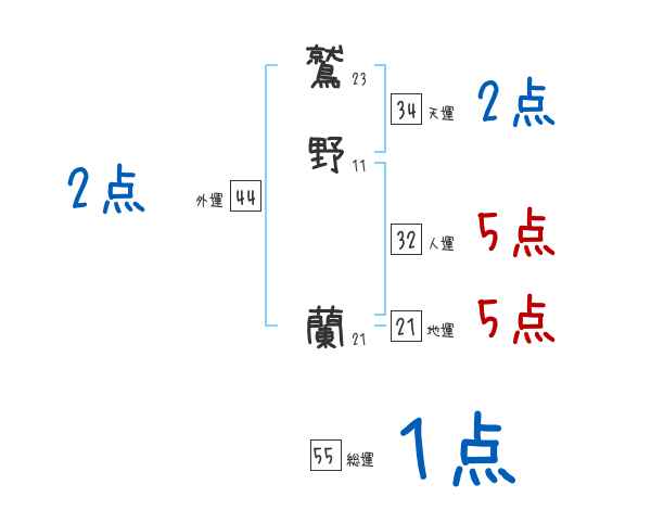鷲野蘭さんの画数の鑑定結果