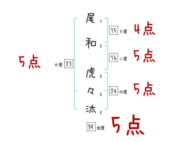 尾和虎々汰さんの画数の鑑定結果