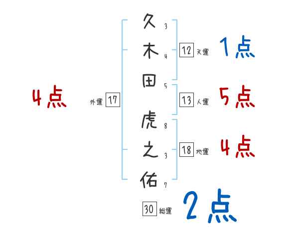 外運![]() | 久木田虎之佑さんの外運は17画の4つ星!積極的な行動力。地位を気づき財産を手に入れる。純粋な心と直感力。 生活面を象徴する運勢です。外部から受ける影響力を表し、結婚運、家庭運や職場、環境への順応性を表します。 |