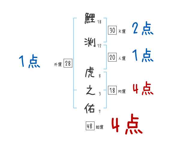 鯉渕虎之佑さんの画数の鑑定結果