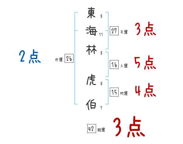 外運![]() | 東海林虎伯さんの外運は26画の2つ星!波瀾万丈かも。信頼できる人を大事にしましょう。 生活面を象徴する運勢です。外部から受ける影響力を表し、結婚運、家庭運や職場、環境への順応性を表します。 |