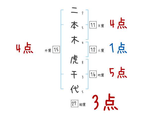 二本木虎千代さんの画数の鑑定結果