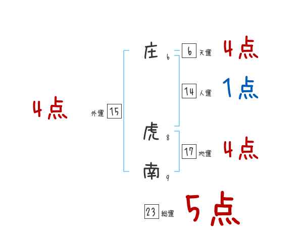 庄虎南さんの画数の鑑定結果