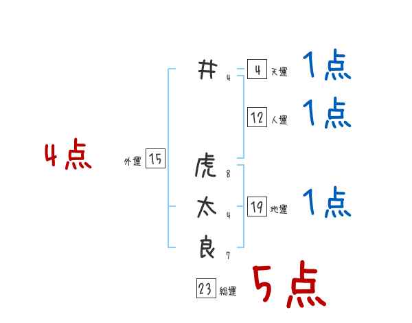 井虎太良さんの画数の鑑定結果