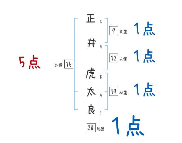 外運![]() | 正井虎太良さんの外運は16画の5つ星!人望が厚く大きく発展する。逆転成功が見える。 生活面を象徴する運勢です。外部から受ける影響力を表し、結婚運、家庭運や職場、環境への順応性を表します。 |