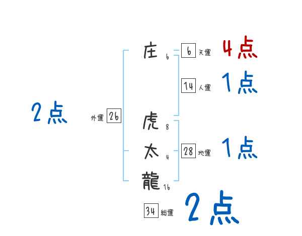 庄虎太龍さんの画数の鑑定結果