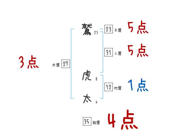 鷲虎太さんの画数の鑑定結果