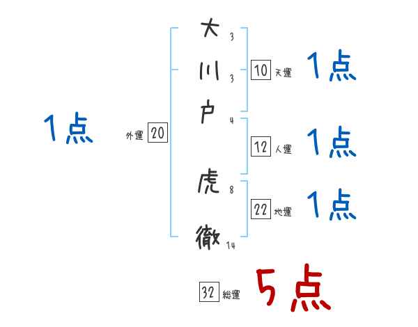 天運![]() | 大川戸虎徹さんの天運は10画の1つ星!不安を感じやすい傾向。ストレスを抱えないように注意しましょう。 家系が持つ宿命的な運勢を表します。祖先から受け継いだ苗字ですので自分の力が及びません。家柄を象徴します。 |