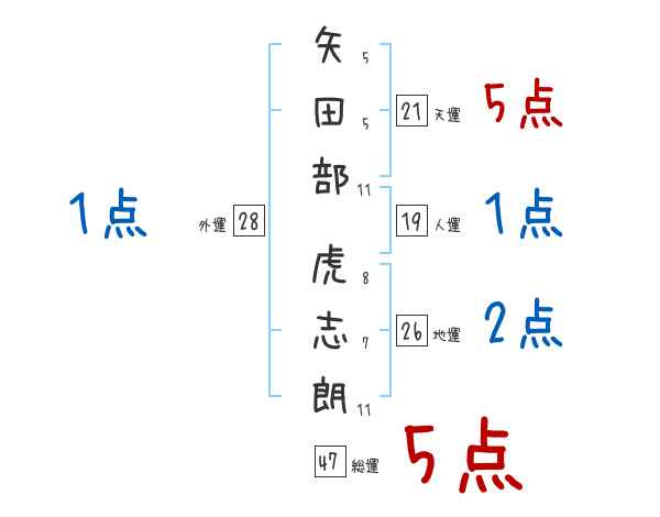 矢田部虎志朗さんの画数の鑑定結果