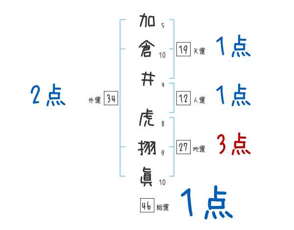 加倉井虎挧眞さんの画数の鑑定結果