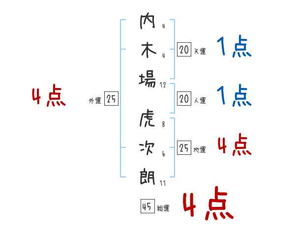 総運![]() | 内木場虎次朗さんの総運は45画の4つ星!もくもくと物事を進め達成する。地味な努力家。 あなたの人生を表す1番重要な運勢です。生涯を通じて影響する総合運となり、主に50歳以降の晩年期に影響を及ぼします。 |