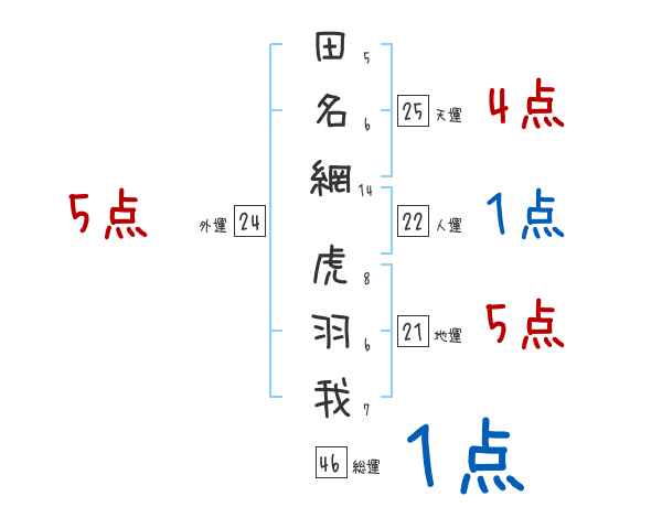 田名網虎羽我さんの画数の鑑定結果