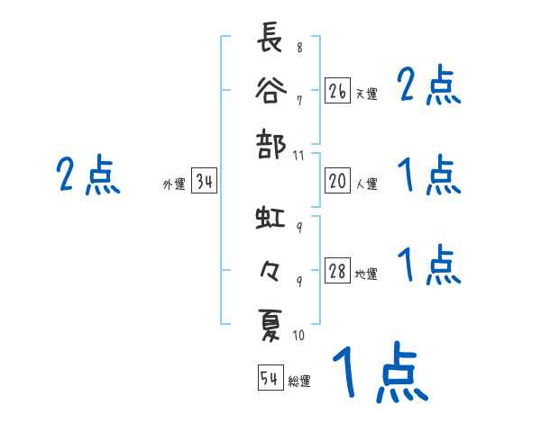 長谷部虹々夏さんの画数の鑑定結果