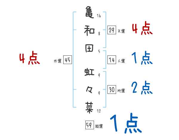 亀和田虹々菜さんの画数の鑑定結果