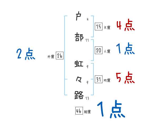 戸部虹々路さんの画数の鑑定結果