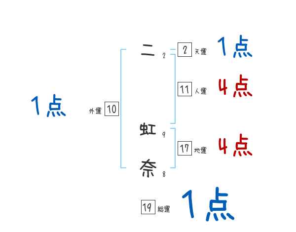 二虹奈さんの画数の鑑定結果