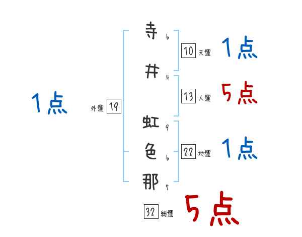 寺井虹色那さんの画数の鑑定結果