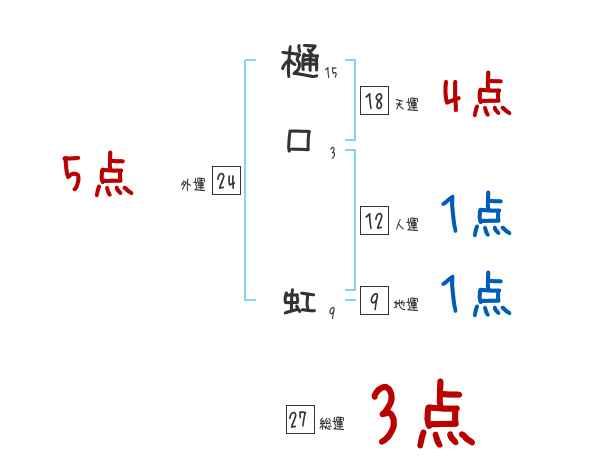 天運![]() | 樋口虹さんの天運は18画の4つ星!情熱的で剛気。忍耐力があり信頼される。 家系が持つ宿命的な運勢を表します。祖先から受け継いだ苗字ですので自分の力が及びません。家柄を象徴します。 |