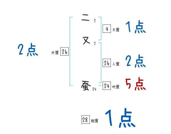 二又蚕さんの画数の鑑定結果