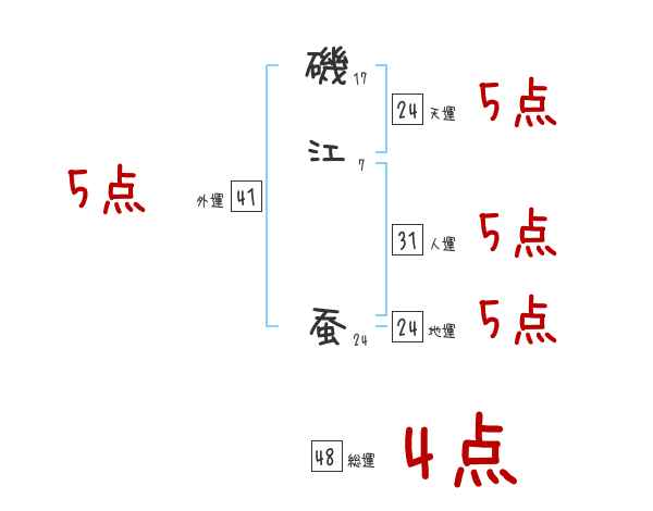 磯江蚕さんの天運は24画の5つ星