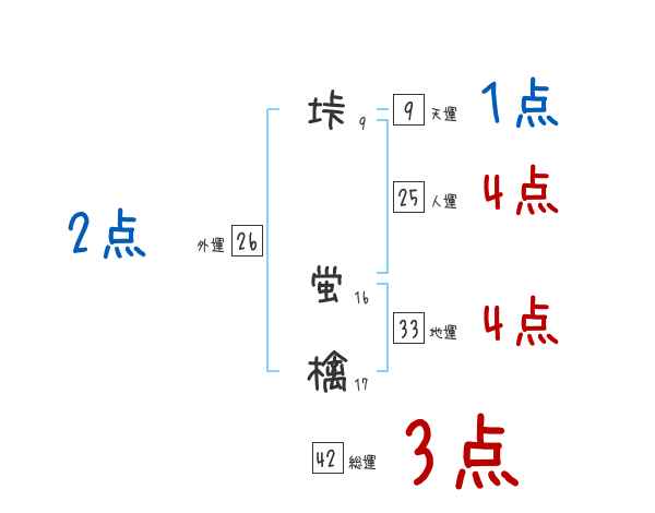 天運![]() | 垰蛍檎さんの天運は9画の1つ星!消極的で才能を発揮することが苦手なことも。周りの意見に耳を傾けましょう。 家系が持つ宿命的な運勢を表します。祖先から受け継いだ苗字ですので自分の力が及びません。家柄を象徴します。 |