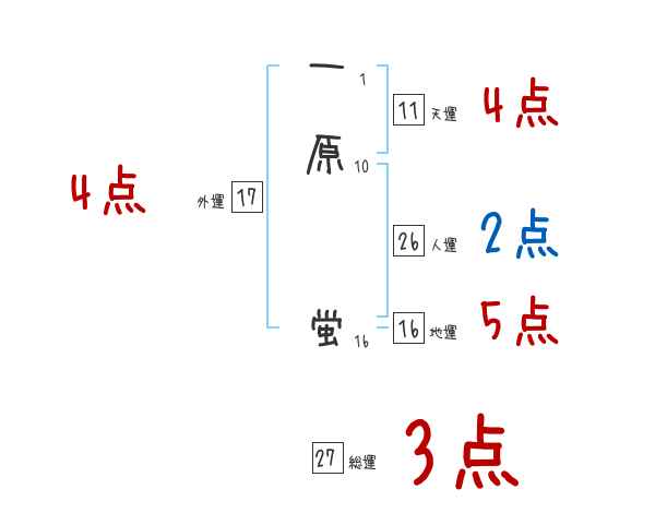 地運![]() | 一原蛍さんの地運は16画の5つ星!人望が厚く大きく発展する。逆転成功が見える。 個性を表す基礎的な運勢です。性格形成や対人関係、行動力など家庭環境に影響されます。主に誕生してから20歳くらいまでの若年期の運勢を表します。 |
