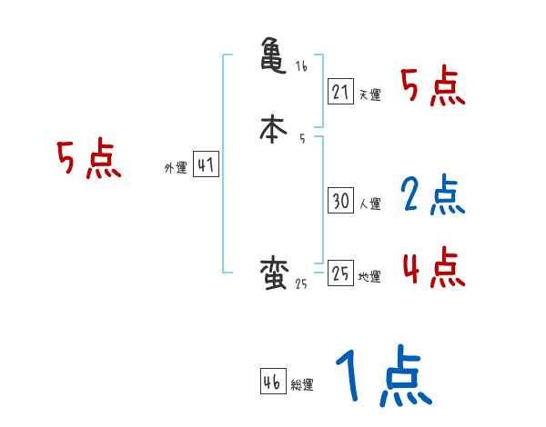 亀本蛮さんの画数の鑑定結果