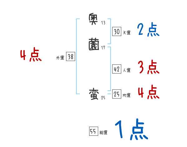 天運![]() | 奥薗蛮さんの天運は30画の2つ星!浮き沈みの激しさに注意しましょう。 家系が持つ宿命的な運勢を表します。祖先から受け継いだ苗字ですので自分の力が及びません。家柄を象徴します。 |