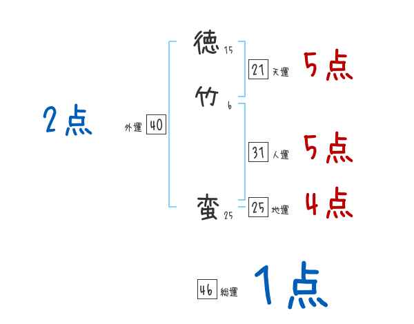 天運![]() | 徳竹蛮さんの天運は21画の5つ星!統率力がある。独立し成功する。名誉を手に入れる。 家系が持つ宿命的な運勢を表します。祖先から受け継いだ苗字ですので自分の力が及びません。家柄を象徴します。 |