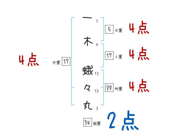 天運![]() | 一木蛾々丸さんの天運は5画の4つ星!健康で安泰。協調性に優れ、財産に恵まれる。 家系が持つ宿命的な運勢を表します。祖先から受け継いだ苗字ですので自分の力が及びません。家柄を象徴します。 |