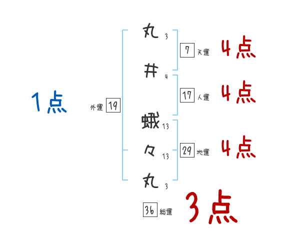 天運![]() | 丸井蛾々丸さんの天運は7画の4つ星!強い意志や信念を持ち独立心が強い。自立する。 家系が持つ宿命的な運勢を表します。祖先から受け継いだ苗字ですので自分の力が及びません。家柄を象徴します。 |