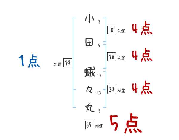 小田蛾々丸さんの画数の鑑定結果