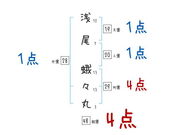 総運![]() | 浅尾蛾々丸さんの総運は48画の4つ星!賢明な性格で人望が厚い。指導力があり多くの人に尊敬される。 あなたの人生を表す1番重要な運勢です。生涯を通じて影響する総合運となり、主に50歳以降の晩年期に影響を及ぼします。 |