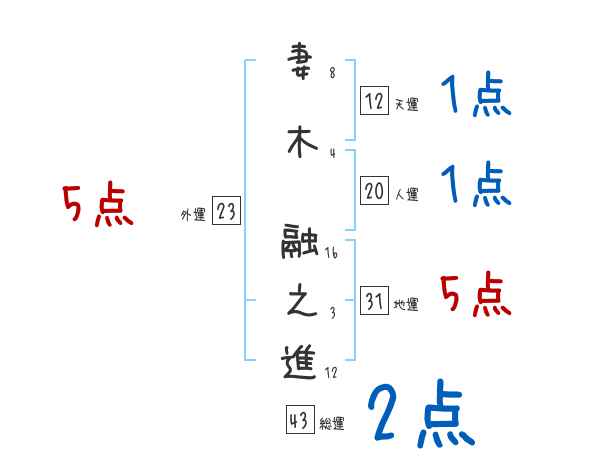 妻木融之進さんの画数の鑑定結果