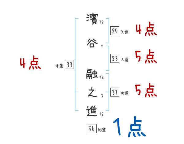 濱谷融之進さんの画数の鑑定結果