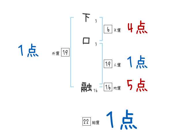 総運![]() | 下口融さんの総運は22画の1つ星!努力することが苦手ないっぽう手先が器用。芸術性にも優れる。 あなたの人生を表す1番重要な運勢です。生涯を通じて影響する総合運となり、主に50歳以降の晩年期に影響を及ぼします。 |