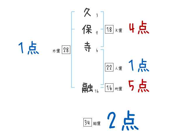 久保寺融さんの画数の鑑定結果