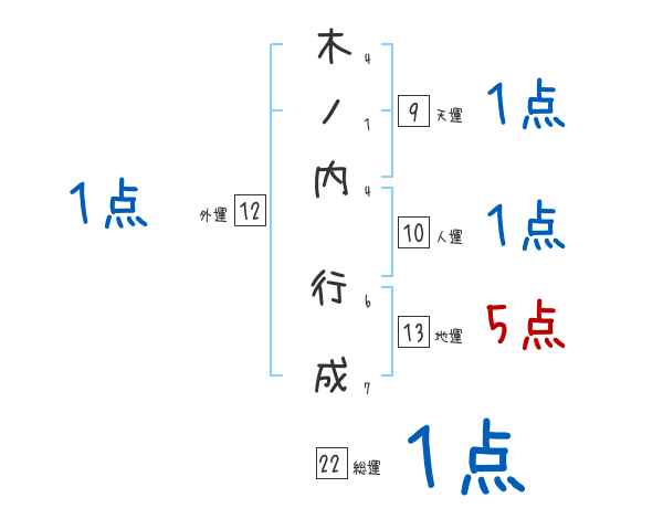 天運![]() | 木ノ内行成さんの天運は9画の1つ星!消極的で才能を発揮することが苦手なことも。周りの意見に耳を傾けましょう。 家系が持つ宿命的な運勢を表します。祖先から受け継いだ苗字ですので自分の力が及びません。家柄を象徴します。 |