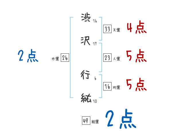 渋沢行紘さんの画数の鑑定結果