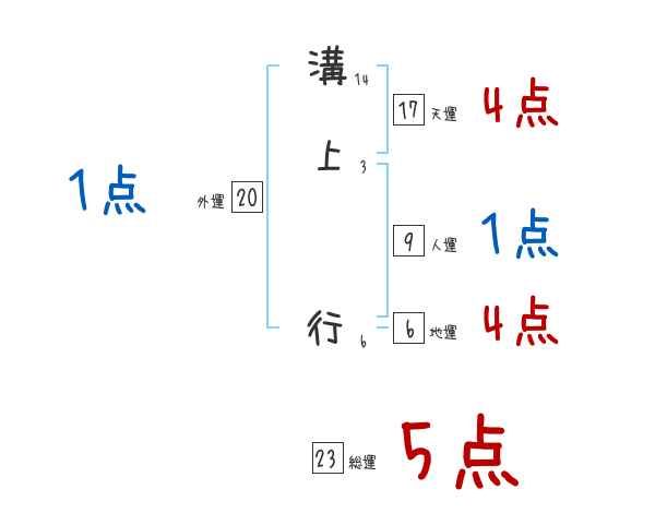 天運![]() | 溝上行さんの天運は17画の4つ星!積極的な行動力。地位を気づき財産を手に入れる。純粋な心と直感力。 家系が持つ宿命的な運勢を表します。祖先から受け継いだ苗字ですので自分の力が及びません。家柄を象徴します。 |