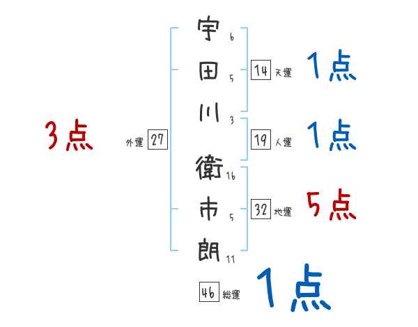 宇田川衛市朗さんの画数の鑑定結果
