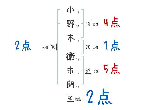 小野木衛市朗さんの画数の鑑定結果