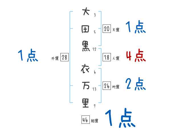 天運![]() | 大田黒衣万里さんの天運は20画の1つ星!社交が苦手。人とは違った才能があり波乱万丈な人生かも。 家系が持つ宿命的な運勢を表します。祖先から受け継いだ苗字ですので自分の力が及びません。家柄を象徴します。 |