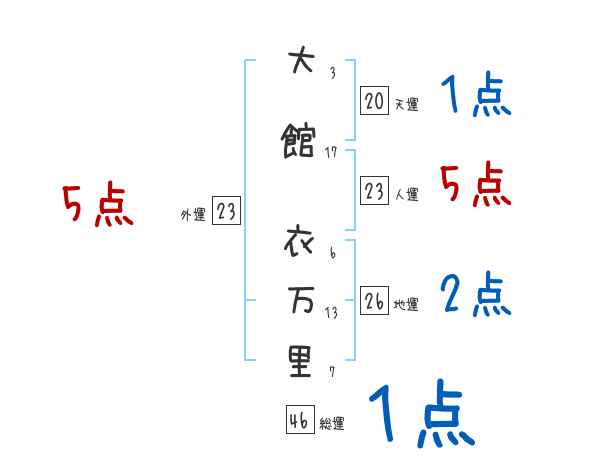 大館衣万里さんの画数の鑑定結果