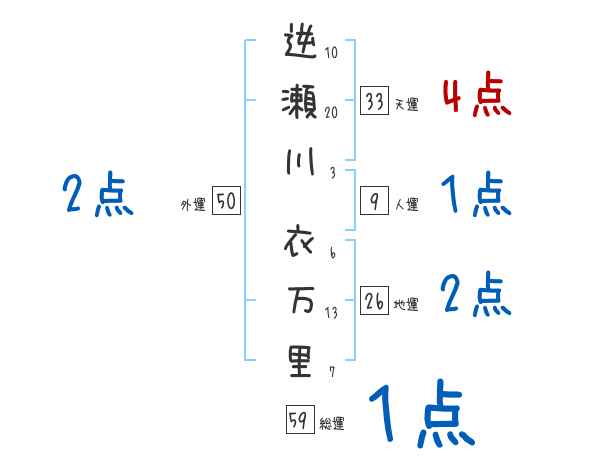 逆瀬川衣万里さんの画数の鑑定結果