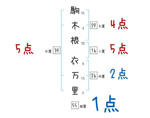 駒木根衣万里さんの画数の鑑定結果