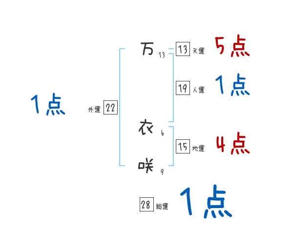 万衣咲さんの画数の鑑定結果