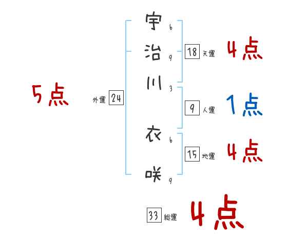 宇治川衣咲さんの画数の鑑定結果