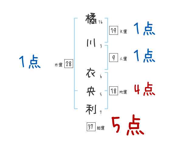 橘川衣央利さんの画数の鑑定結果